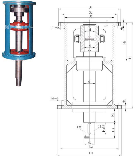 機架型號 | 減速機 | D1 | D2 | D3 | n1-φ | D4 | D5 | n2-φ | d | d1 | d2 | h | H | H1 | H2 | H3 | H4 | H5 | H6 |