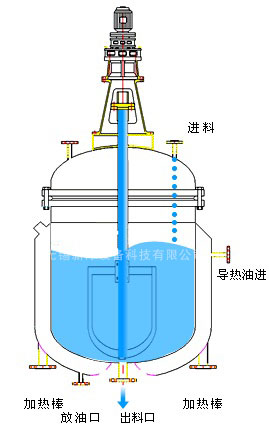 攪拌罐蓋上部配置有傳動裝置(電機或減速器),由傳動軸驅(qū)動攪拌罐內(nèi)的攪拌器。