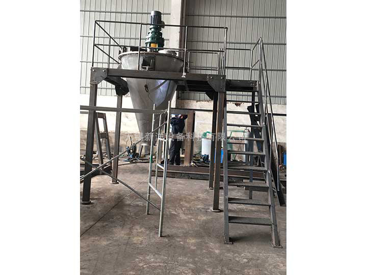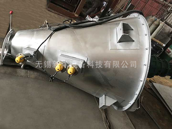 設備設有多種樣式(刮板、內螺旋、外螺帶),也可以雙錐體結構,適應不同物料,適應較高粘度的流體物料混合。螺帶式混合機,它是攪拌粘性流體或稠狀、濕狀、膏狀為主,也可以混合粉體。