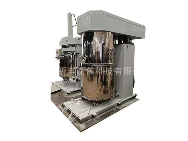 行星分散攪拌機(jī)有高速、低速、活動(dòng)刮板作攪拌、剪切、刮壁、溶解用。低速運(yùn)轉(zhuǎn)的攪拌錨使物料在密閉容器內(nèi)上下翻動(dòng)、剪切和混合,高速運(yùn)轉(zhuǎn)的齒形分散盤與混合的物料產(chǎn)生強(qiáng)烈的碰擊和剪切,隨著攪拌錨的旋轉(zhuǎn),行星架上的活動(dòng)刮刀隨著旋轉(zhuǎn),把釜體上的物料完全刮掉,使聚集物完全、徹底地達(dá)到混合、分散、溶解的要求。在其高低速的不同作用下,使物料能夠達(dá)到均勻的混合和分散。